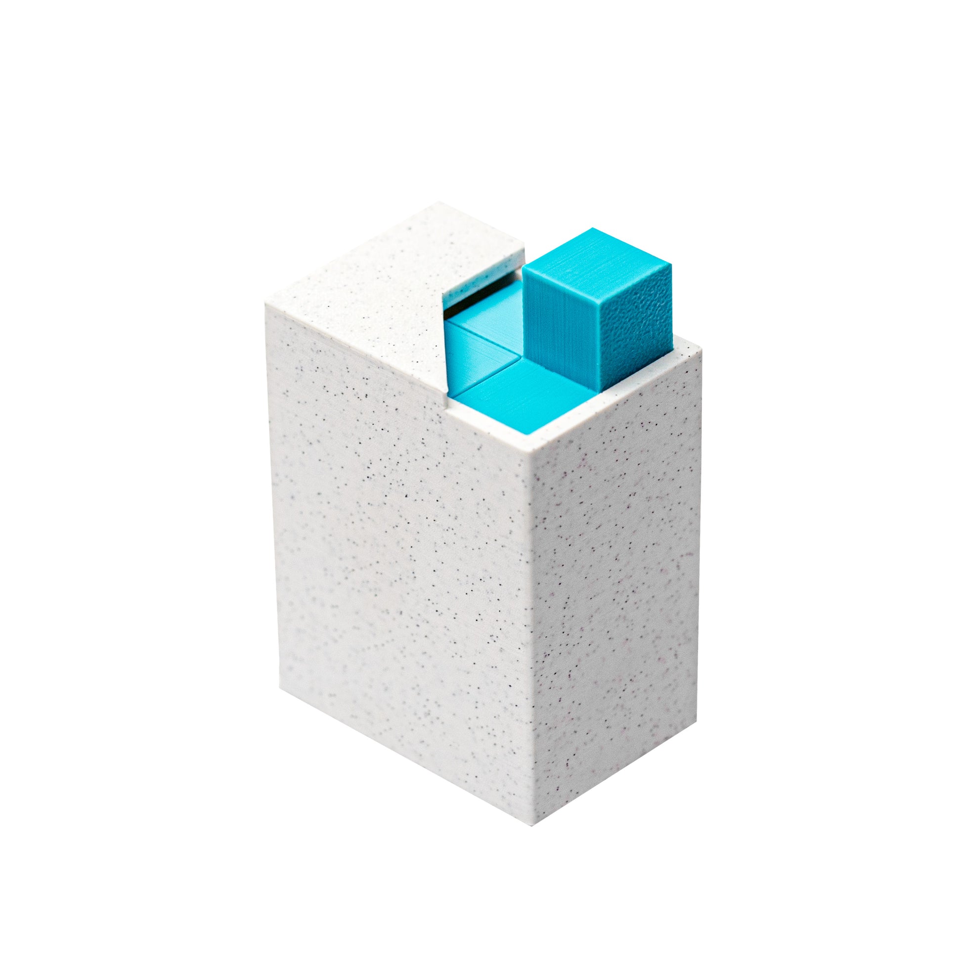 The elegance of this puzzle comes from the identical pieces and the seemingly simple box. Although it is not Osanori Yamamoto's hardest puzzle, it will require some concentrated thinking and imagination to solve.